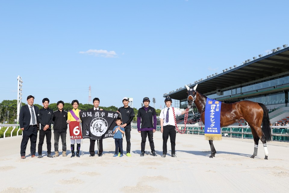 当初は3歳牝馬重賞のじぎく賞(22日・園田)を目指していたが、2週間前倒した今回の挑戦が成功した。「前走の休養明け初戦を勝って、馬の雰囲気が良かった。それを生かしたかった」と吉見真師。今後は未定だが「馬の状態次第になるが、のじぎく賞はまだ視野に入っている」。キミノハート、厩舎ともに重賞2勝目を挙げる時期は早そうだ。