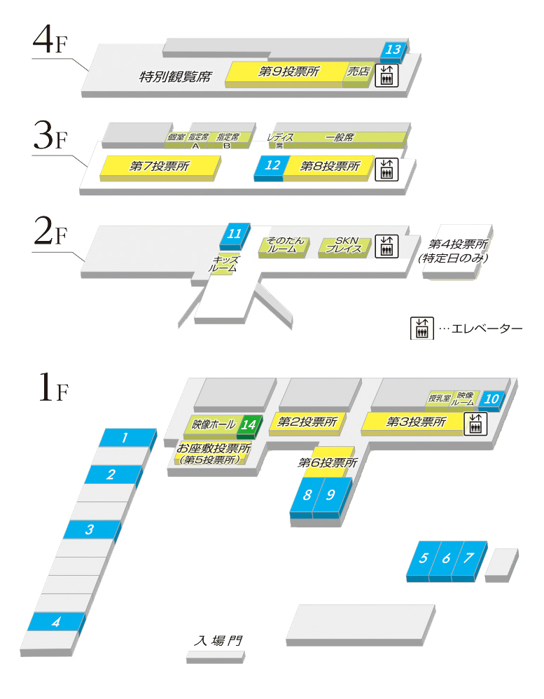 ⑬ 特別観覧席 ドン勝 | 4階特別観覧席内唯一のお店。まぐろ屋から出前も出来ます♡ |