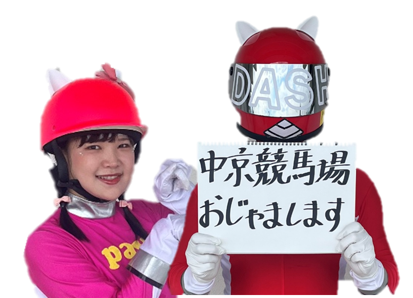 近ごろ話題⁉のDASH-PayマンとDASH-PayもんがSKNフラッシュ8、そのたん・ひめたんを引き連れ、兵庫を飛び出し、中京競馬場に登場!!