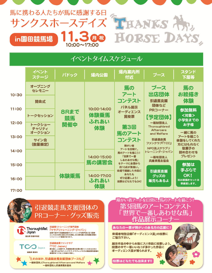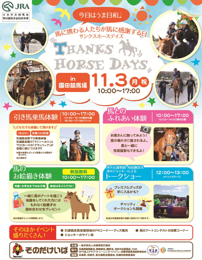 11月3日(祝月)にサンクスホースデイズin園田競馬場を開催いたします。