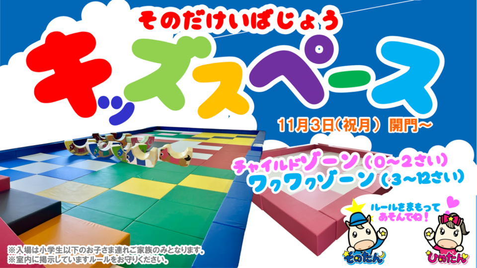 休憩スペース、キッズスペース2箇所(0~2歳向け及び3歳~12歳向け)