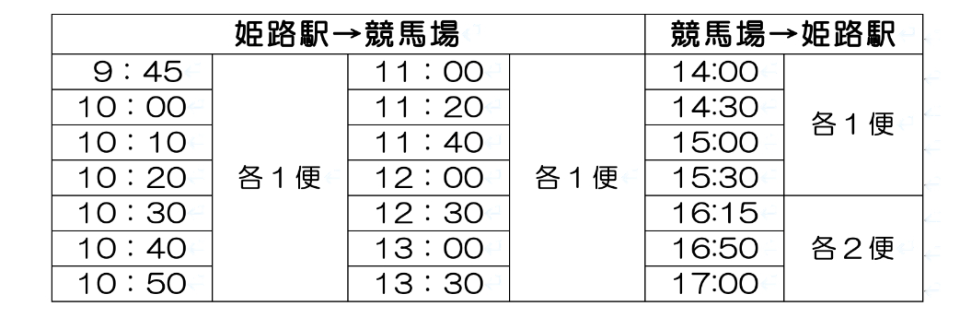 ※姫路競馬開催中は、阪神・JR尼崎駅のファンバスは運行しません。