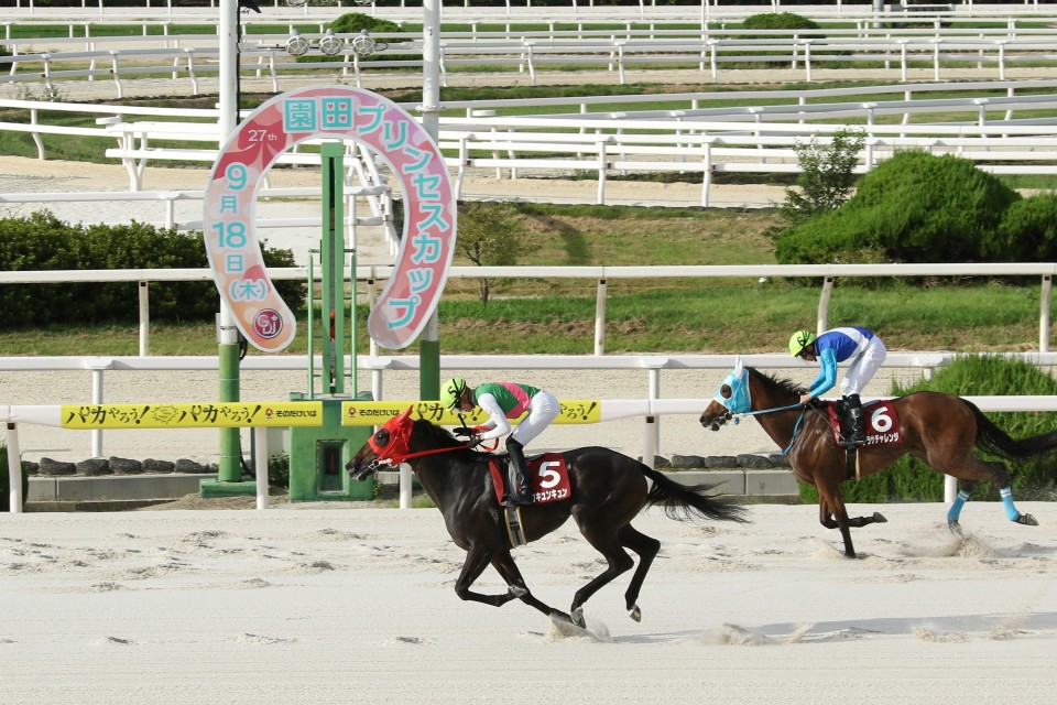 園田競馬のスポーツニッポン新聞社賞「第27回園田プリンセスカップ」は18日、第11Rの1400㍍戦で争われ、山本咲希到が騎乗する地元のココキュンキュン(牝2=長南和)が優勝した。2着は南関東所属のサラサチャレンジ、3着は兵庫のクリスタルピットが入った。なお、1番人気に支持された道営のミスティライズは5着に敗れた。