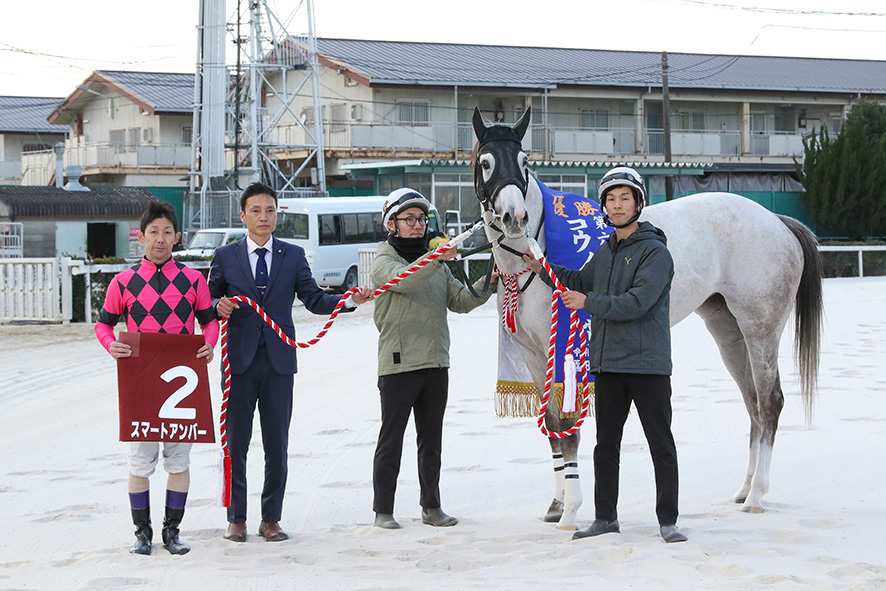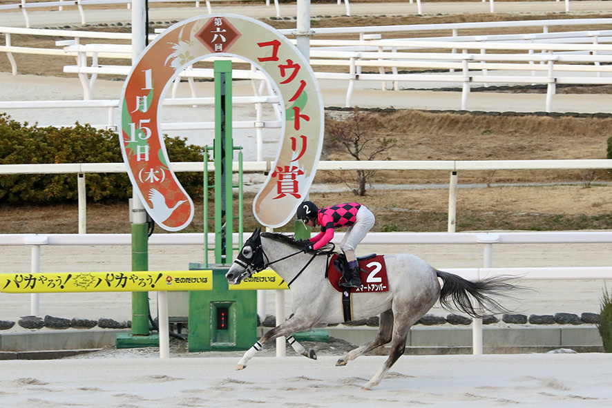 実力派牝馬が集結した第6回「コウノトリ賞」を制したのはスマートアンバー。好スタートから主導権を奪うとマイペースの逃げで後続を寄せつけず5馬身差の圧勝。3コーナーあたりで下原騎手の手は動いていたが、後続に目立った動きはなく大事に至ることはなかった。戦前は距離不安説も聞こえていたが、雑音を封じる圧勝劇で永島太師に初の重賞勝ちをもたらした。距離の選択肢が広がったのは非常に大きく、今後はグランダム古馬シーズンでの活躍が期待される。